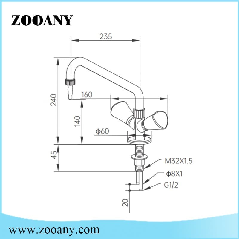 ZAKA9 deck mounted single outlet mixer/hot and cold water tap